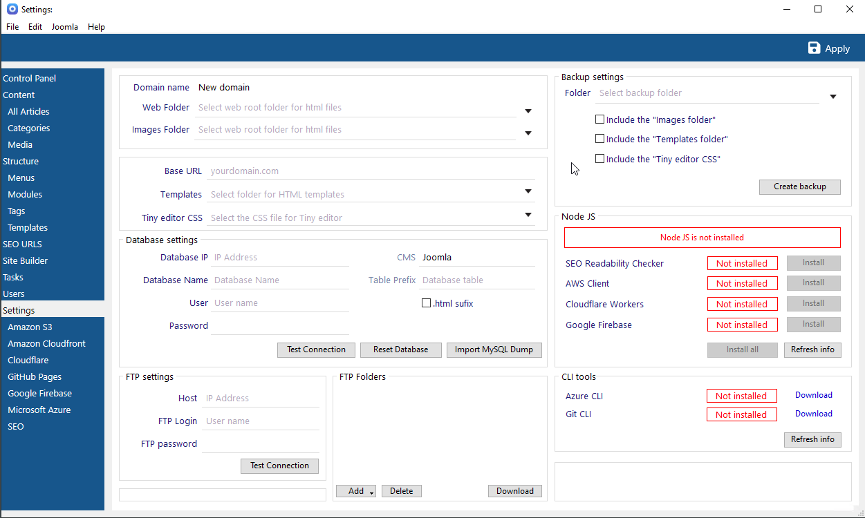 SEO readability, AWS, CloudFlare, Google Firebase and Azure is only available to subscribers of YouDoCMS . Integration with git hub pages is included in the free version. See pricing.